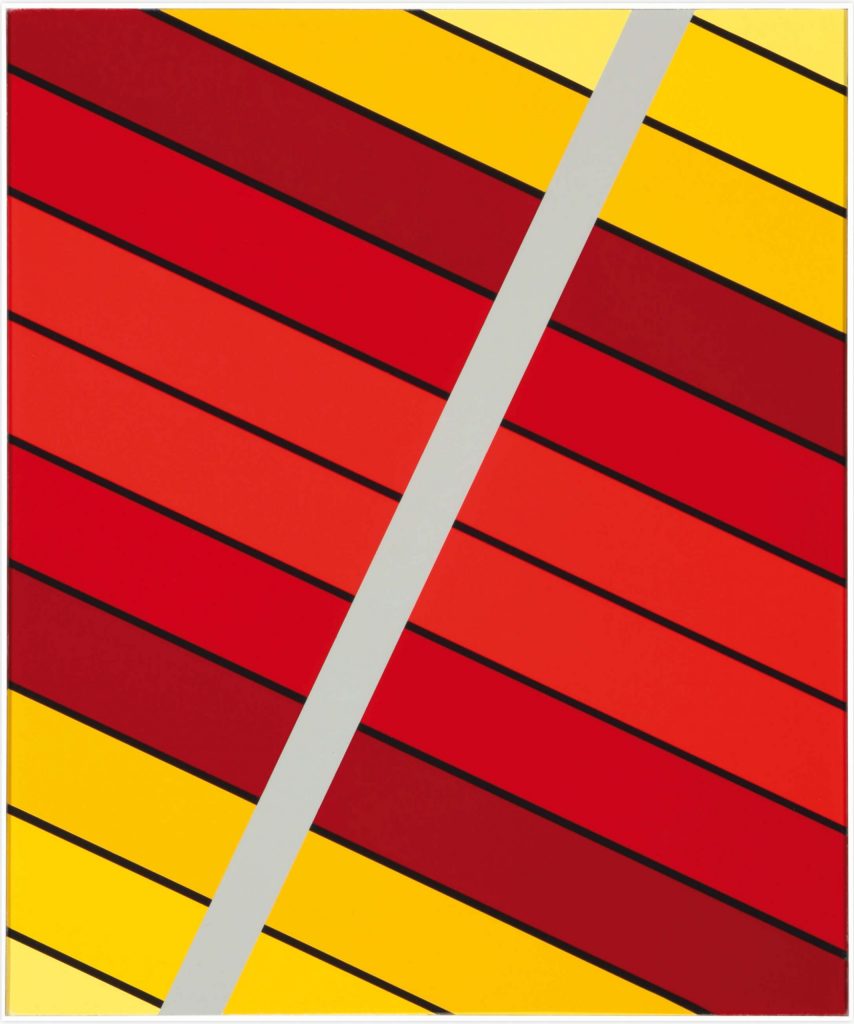 Je nach Aufteilung der Farbflächen formiert sich in der Mittelachse eine Körperhaftigkeit, die den Eindruck plastischer Tiefe hervorruft. Aus diesem Wechselspiel entsteht eine räumliche Spannung, die den zweidimensionalen Bildträger fast überschreitet.